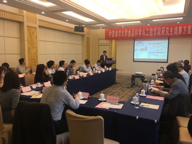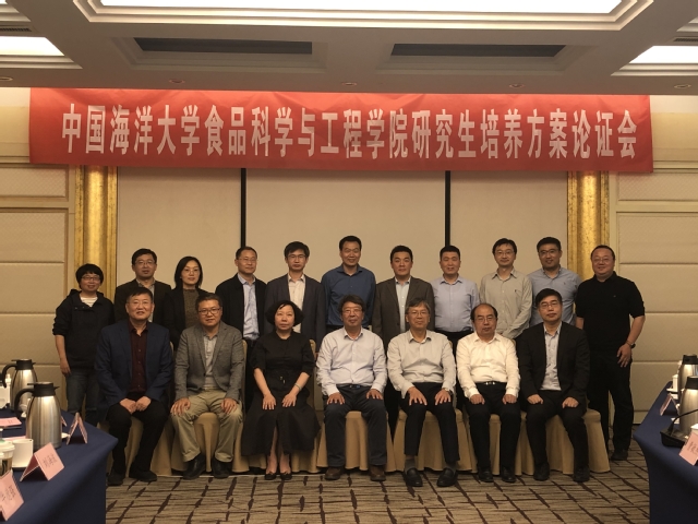 本站讯 5月21日,中国海洋大学食品科学与工程学院研究生培养方案暨学位授予标准专家咨询会在黄海饭店举行。咨询专家组由集美大学副校长曹敏杰担任组长,浙江大学生物系统工程与食品科学学院副院长刘东红、中国农业大学食品科学与营养工程学院高彦祥、山东农业大学食品科学与工程学院院长乔旭光、河南工业大学粮油食品学院院长赵仁勇、天津科技大学食品科学与工程院长杜欣军、中国海洋大学食品科学与工程学院林洪教授作为咨询专家。学校研究生院培养办公室主任刘海波、招生办公室主任牛德强、培养办公室副主任张慧丽应邀参加会议,食品科学与工程学院党委书记辛华龙、院长薛长湖及党政领导班子成员和部分教师代表参加了会议。会议由食品科学与工程学院院长薛长湖主持。