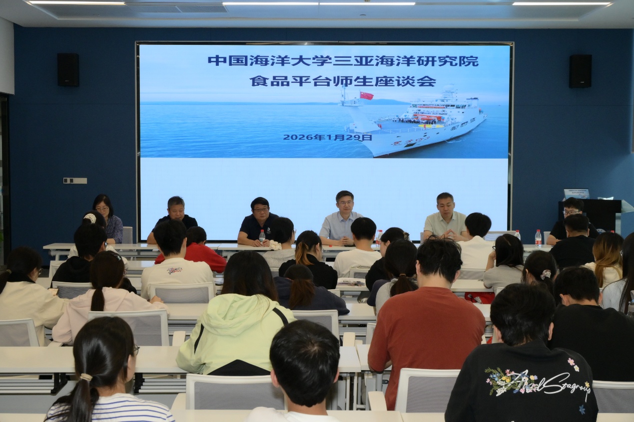 1月29日下午,食品科学与工程学院院长毛相朝一行赴中国海洋大学三亚海洋研究院,实地调研热带海洋食品绿色加工技术创新与转化平台建设进展,并与平台全体师生座谈交流。座谈会由学院三亚研究生教育中心主任高昕主持,薛勇、张朝辉、李敬、张海洋及各年级学生参加座谈。