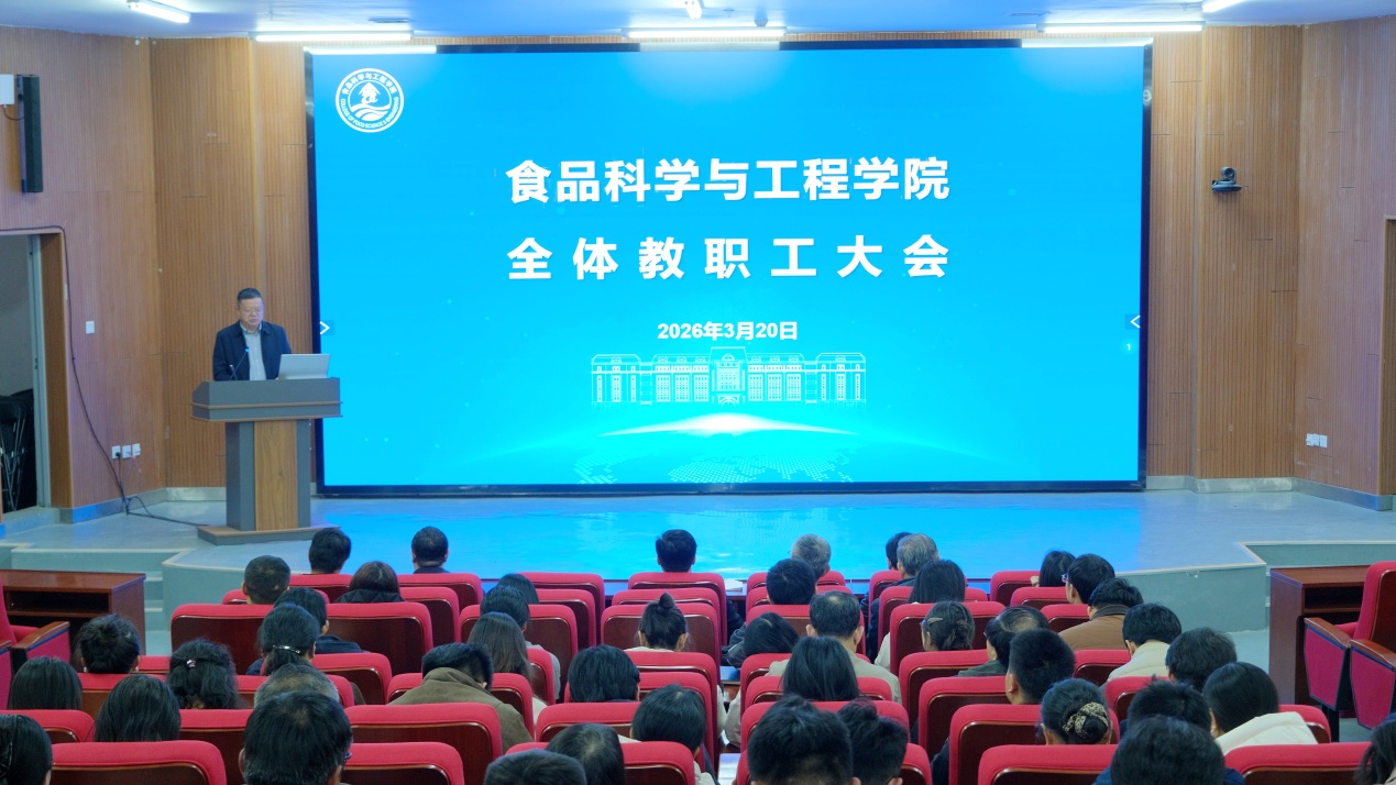 3月20日下午,食品科学与工程学院召开2026年春季学期教职工大会。会议由学院党委书记于德华主持,学院党政领导班子成员及全体教职工参会。