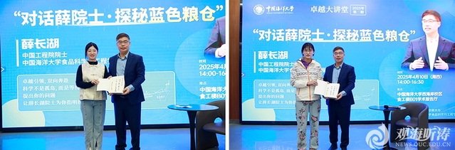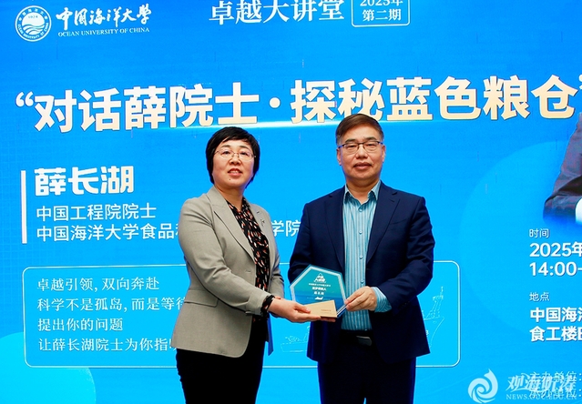 本站讯 4月10日,本科生卓越大讲堂2025年第2期在西海岸校区举办。本期活动以“对话薛长湖院士·探秘蓝色粮仓”为主题,特邀中国工程院院士、食品科学与工程学院教授薛长湖作专题报告。